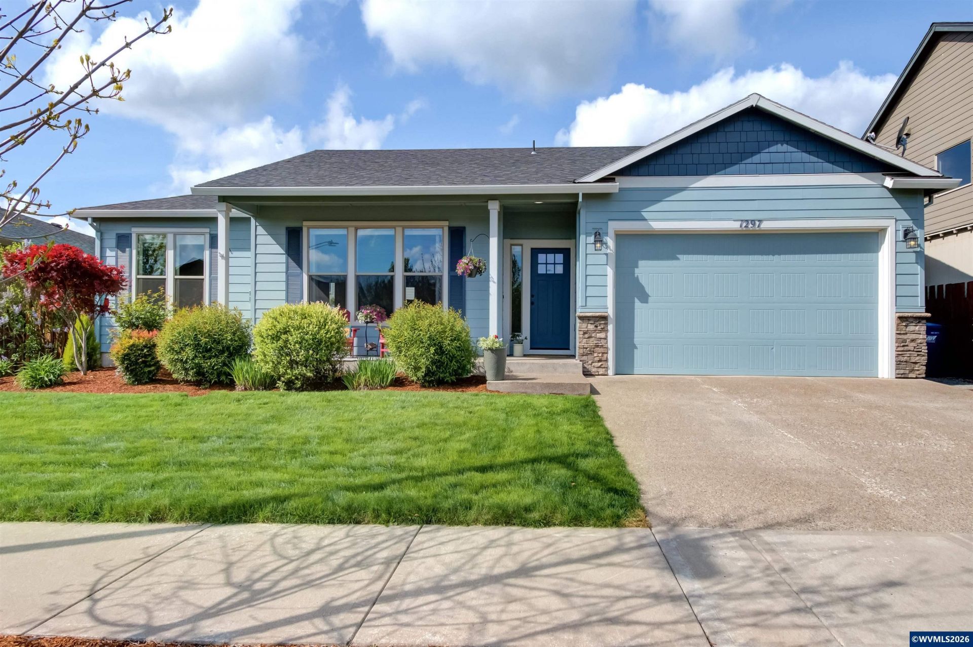 This well-maintained 3-bedroom home was built in 2019 and offers 1,365 sq ft with a functional open-concept layout. The main living area includes vaulted ceilings and gas fireplace which flows into the dining space and kitchen, creating a connected setup for everyday living. The kitchen features beautiful cabinetry, and generous countertop space, along with stainless steel appliances. The primary suite includes an attached bathroom, and the additional bedrooms provide flexible space for guests, office use, or hobbies. The home also includes an attached 2-car garage and a fully fenced backyard perfect for entertaining with covered and screened patio, hot-tub, play space, and gardening. Convenient Woodburn location close to shopping, dining, parks, schools, and easy access to I-5 for commuting north toward Wilsonville/Portland or south toward Salem.