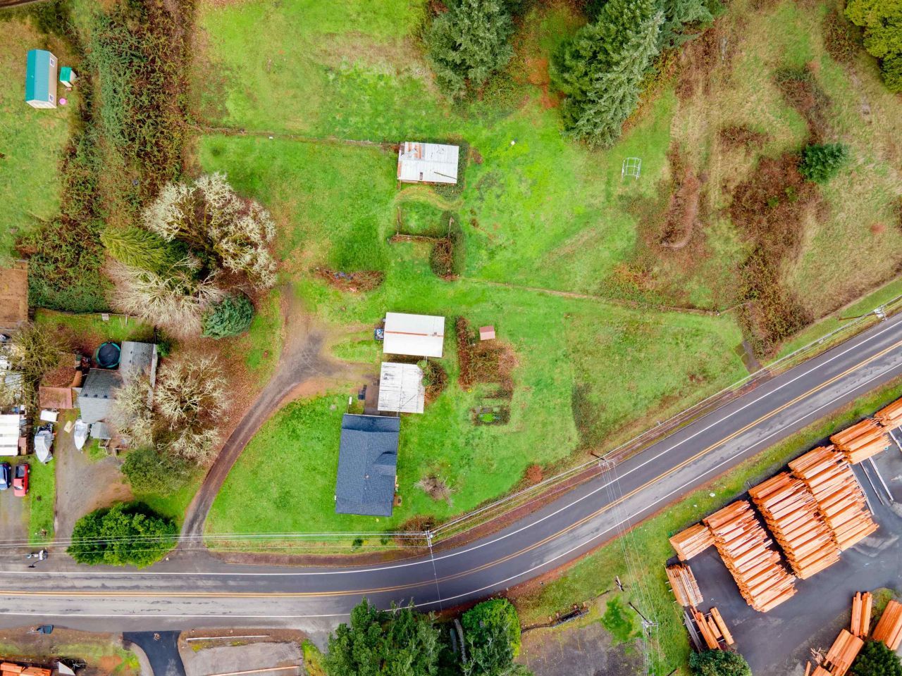 The home offers 4 bedrooms (1 non-conforming) and 1 bath within 1,720 sq ft, featuring tall ceilings and original hardwood floors. The interior was taken down to the studs during the remodel, offering updated systems and finishes throughout, and includes a newer pellet stove for efficient, cozy heating. A spacious kitchen and large living room create a warm, inviting atmosphere. Situated on 1.93 acres with three buildable tax lots, there is plenty of space to garden, relax, or expand. The property includes two barns, one currently used as a workshop. Enjoy a peaceful country living just 30 minutes from Eugene and 45 minutes from the coast. Recent improvements include a new roof (2024), newer water heater, new appliances, cabinets, marble countertops, new electric heaters, new windows and exterior doors, fresh interior and exterior paint, and a reverse osmosis water system.